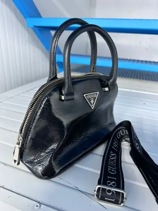 Bolso de mano y hombro Guess en acabado charol. Está como nuevo, se encuentra en Granada, también hago envíos - Asa corta para llevar en mano. - Correa larga ajustable y extraíble con logo. - Cierre de cremallera. - Detalle de logo metálico triangular.