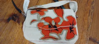 Bolso de mano Desigual con un bonito estampado floral. - Diseño con flores naranjas sobre fondo beige. - Adornos alrededor de las flores. - Correa ajustable para llevar al hombro.