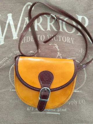Bolso de piel con un diseño moderno y práctico. - Material: Piel genuina. - Combinación de colores: Naranja y marrón. - Cierre con hebilla metálica con Iman - doble compartimento interior. - cremallera interior. ancho 17 x alto 15 x 7 grueso