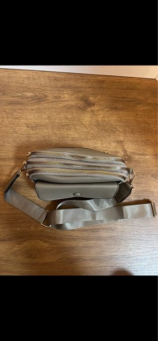 Bolso bandolera de estilo moderno y práctico. - Diseño con múltiples compartimentos frontales. - Cremalleras y detalles metálicos en tono dorado. - Correa ajustable para llevar cruzado o al hombro. VENTA DIRECTA EN MÁLAGA