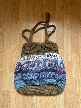 Bolso saco mimbre y piel