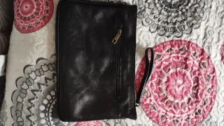bolsillo único, con cierre de cremallera y luego con botón imantado, ligero, correa ajustable. en pertecto estado, sin uso.