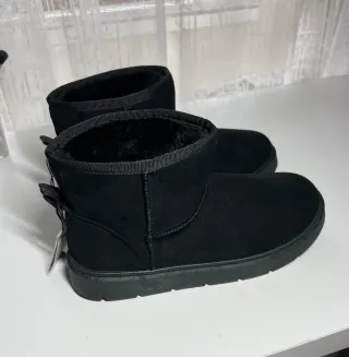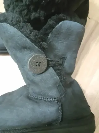 Botas UGG forradas de color negro. Perfectas para mantener los pies calientes. - Material exterior de ante. - Forro interior suave y cálido. - Suela resistente. - Muy cómodas. - Suela de goma blanda.