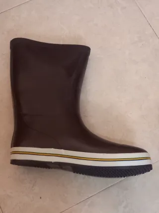 Bota de agua de estilo clásico. - Diseño alto. - Banda decorativa en la suela con detalles en blanco, amarillo y verde. - Suela de goma con relieve.