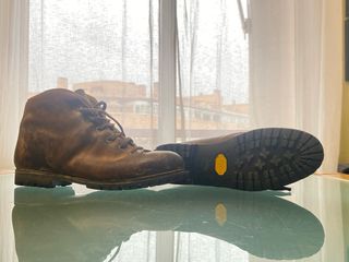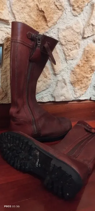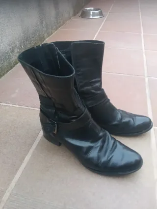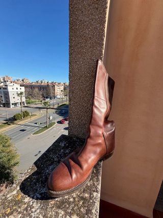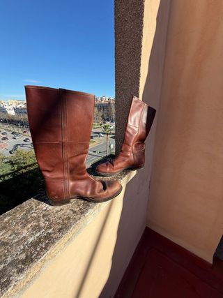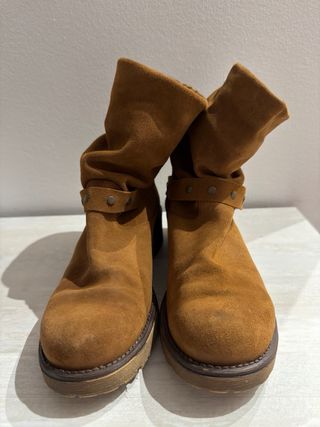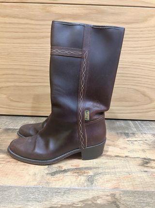 Botas camperas de piel de becerro. Puestas 3 veces . Puesta de suelas de caucho para no resbalar . El cuero super blando e intacto . Lo vendo a la mitad de su precio . Comprado en el Rocio . - Material: Piel de becerro.