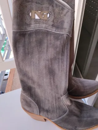 Elegantes botas de origen italiano, confeccionadas en ante y con detalles bordados. - Diseño italiano. - Material: Ante. - Adornos: Bordados.