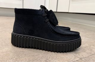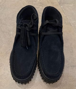 Botas de ante en color negro. Un calzado versátil y cómodo. Tiene una pequeña mancha en un lateral pero no se aprecia. - Material exterior de ante. - Cierre con cordones. - Suela de goma. - Diseño tipo botín.