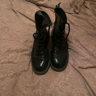 Botas de cuero negro de la marca Dr. Martens. Un clásico para cualquier guardarropa. - Diseño de 8 ojales. - Suela con cámara de aire. - Cordones negros.