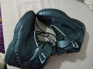 Botas de moto de cuero y malla. - Cierre con velcro y cordones. - Diseño robusto y protector. - Suela antideslizante. Como se muestra, contiene peeling de piel.