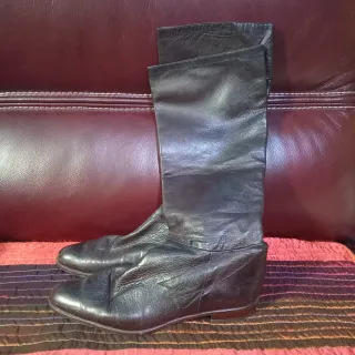 Botas altas de piel, estilo mosquetero. - Material: Piel. - Diseño: Mosquetero. - Tacón: De madera.