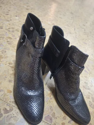 Botas de media caña con un diseño moderno y elegante. - Cierre de cremallera lateral. - Detalle de hebilla y trabilla. - Tacón bajo.