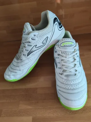Botas de fútbol sala Adidas con un diseño llamativo en blanco y detalles en amarillo neón. - Las botas tiene una garra preciso y es de la malta. Adidas está muy precioso - Cordones blancos para un ajuste seguro. - Suela de goma para un buen agarre en pista. Si necesitas más informaciones escríbeme en privado