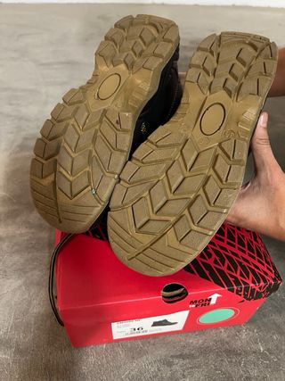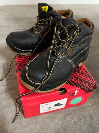 Botas de montaña o trabajo en color negro con detalles en marrón. Perfectas para senderismo o para el trabajo. - Cierre con cordones. - Suela de goma. - Caña alta.