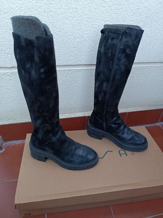 Botas altas de estilo clásico. - Material exterior de piel. - Detalle de ante en la caña. - Cierre de cremallera lateral. - Suela de goma.