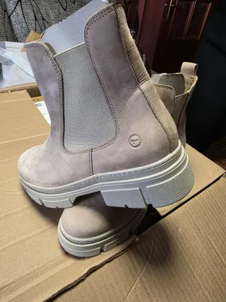 Botas altas de piel en color beige. Un calzado cómodo y con estilo. - Material exterior de piel. - Diseño tipo chelsea con elásticos laterales. - Suela gruesa y resistente. - Detalle de logo de la marca en el lateral.
