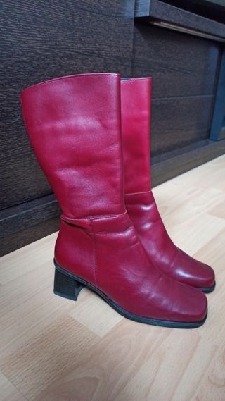 Botas de piel, tono rojo, con tacón,de marca Dorking, fabricadas en España. Talla 35. Puestas dos veces. Se venden por no usarlas
