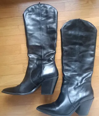 Vendo botas altas de piel de Zara Dos usos Talla 39 Color negro