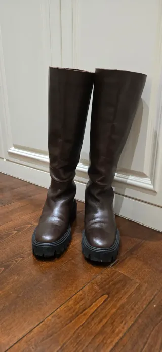 Botas altas de piel con suela track con solo 3 usos - Diseño tipo track. - Piel de alta calidad. - Color marrón oscuro. - Como nuevas. - Tacón 6 cm
