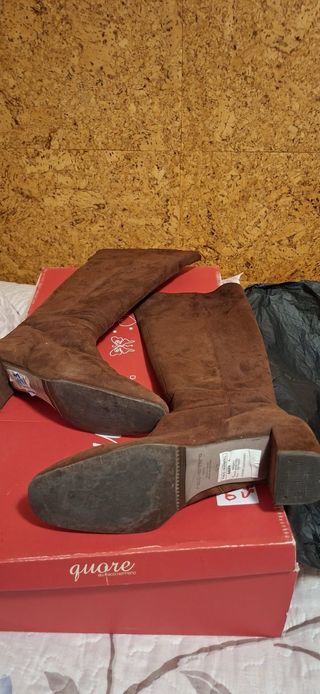 Estupendas!! Preciosas y cómodas. Buen estado. Poco uso. Piel vuelta. Caña alta, 38cm ancho, 40cm de largo. Tacón bajo. Más cositas en mi perfil....