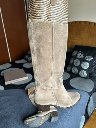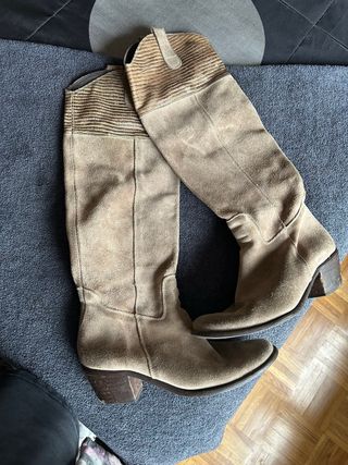Botas altas de piel. Con piel vuelta en la caña y forro interior. Tacón y suela de goma. Cuentan con un solo uso. El precio es negociable