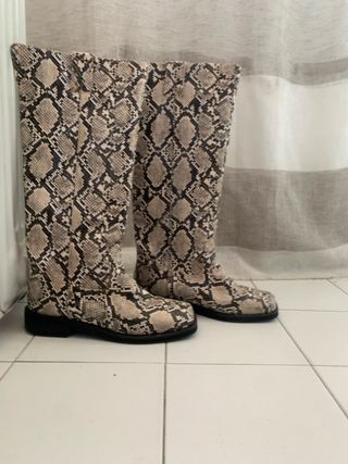 Botas altas de caña alta de la marca Zara. Un diseño elegante y moderno. - Material exterior de piel. - Detalle de hebilla dorada. - Suela gruesa con plataforma.