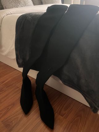 Botas altas de color negro, en buen estado y con poco uso. - Material exterior de ante. - Forro interior suave. - Suela de goma antideslizante.