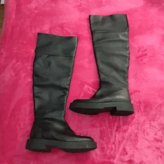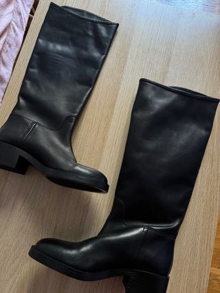 Botas altas de piel de la marca Zara. - Diseño clásico y elegante. - Material exterior de piel. - Color negro.