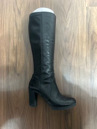 Botas altas de cuero. Color negro. Es el número 37. La bota llega hasta la rodilla, mide 42 cms. De tacón ancho de 6,5 cms. Marca Zindia