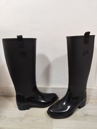 Botas de agua altas de la marca Tommy Hilfiger. - Diseño liso y brillante. - Detalle elástico en la parte superior. - Logo circular de la marca en el lateral. Usadas solamente 3 veces