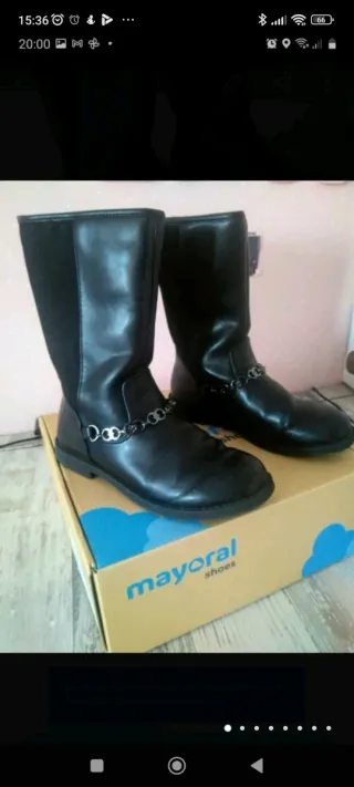 Botas altas de la marca Mayoral en talla 34. - Diseño elegante en color negro. - Detalle de cadena decorativa en la parte delantera. - Paneles laterales elásticos para mayor comodidad.