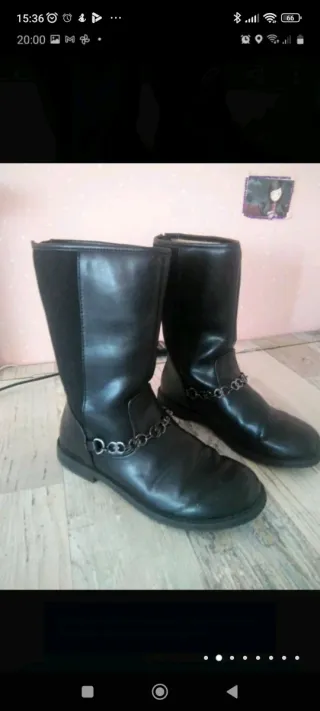 Botas altas de piel negras Talla 40 Son pura piel Tienen tachuelas y un lazo en el tobillo Unos 8-9 cms de tacón Adaptables en la zona de la pantorrilla Tienen algun pequeño roce en las punteras, por lo demás perfectas. Interior totalmente forrado Son super calientes y cómodas