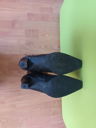 Botas negras altas de Goretex elegantes aptas para el agua. Talla 40, tacón de unos 8 cm. y caña de 30 de alto. ¡¡¡¡¡OJO!!!! LA SUELA HAY QUE REPARALA. Tiene una suela que está para cambiar completamente, pero recomiendo cambiar las dos. Casi no las he usado, pero tienen años y las suelas necesitan cambio. El resto está impecable. El zapatero me ha presupuestado 30 euros cambiar las dos suelas y garantiza su vida para muchos años. OPORTUNIDAD.
