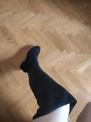 preciosas botas altas de tacon. negras, por encima de la rodilla. Un sólo uso. Oferta si te llevas dos calzados de mi perfil.