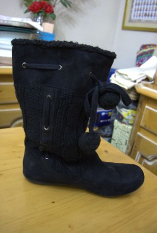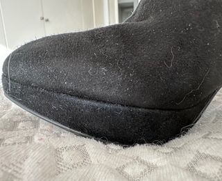 De ante negro con detalle simil piel de pelo enla parte alta de la pierna. Elegantes y calentitas. Las vendo porque me han prohibido usar tacones. Su precio original fue de 200