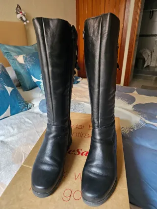 Botas altas de cuero negro. - Diseño clásico y elegante. - Cremallera lateral para facilitar el acceso. - Suela resistente.