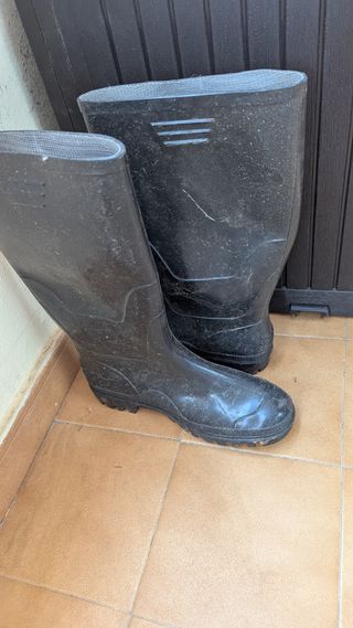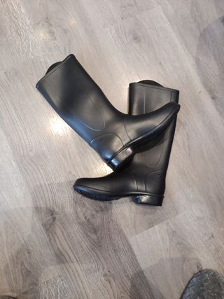 Botas de agua negras, ideales para días lluviosos. Son altas