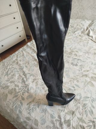 Botas altas de tejido elástico que se adaptan a la pierna. No dan problema de caña, se ajustan super bien y no se bajan. Sin cremallera. - Diseño ajustado. - Suela gruesa y resistente.