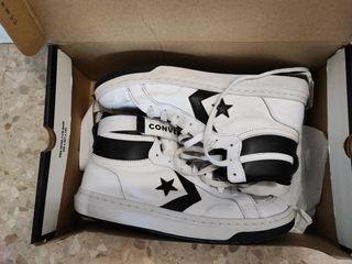 Zapatillas Converse unisex, altas, en blanco y negro. como nuevos. Talla 42.5. Puestas en 4 o 5 ocasiones - Son de cuero y tela. - Están en muy buen estado.