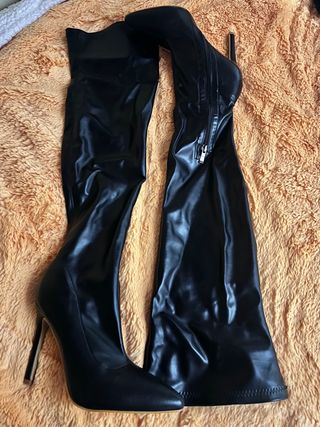 Botas altas de tacón fino. - Material de ante. - Punta afilada. - Tacón alto y fino. Usadas solo una vez, están como nuevas