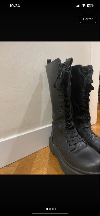 Botas altas de estilo militar con cordones. - Cierre de cordones. - Cremallera lateral. - Suela gruesa y resistente. -Talla 39 pequeño