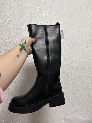 Botas altas de estilo moderno. - Cierre de cremallera lateral. - Detalle elástico en la parte superior de la caña. - Suela plana y cómoda. Usadas pocas veces Compradas en Vas por 110€