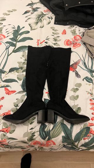 Botas altas de ante con tacón. Son cómodas y elegantes. - Material: Ante - Color: Negro - Tipo de tacón: Bloque