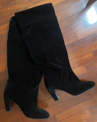 Botas altas de tacón con un elegante efecto ante. - Marca: Zara - Color: Negro - Talla: 37