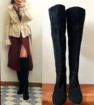 Botas altas de la marca Zara. - Diseño de caña alta por encima de la rodilla. - Elásticas. - Tacón grueso y alto. - Material ante.