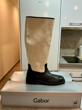 Botas de piel altas, marca Zara, beige y negro, talla 41, nuevas