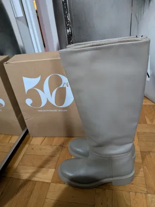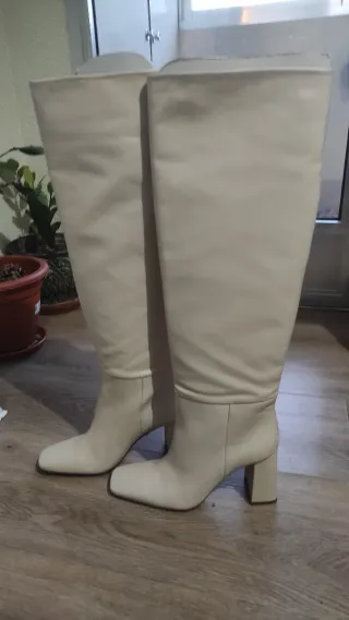 Botas altas de la marca Zara en color beige. Un básico para tu armario. - Diseño de caña alta. - Suela gruesa y track. - Acabado liso.