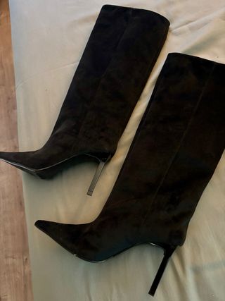 Botas altas de caña alta de la marca Zara. - Diseño elegante y moderno. - Tacón fino para un look sofisticado. - Punta afilada.