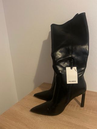 Botas altas de tacón con punta afilada. - Diseño elegante y moderno. - Cierre de cremallera lateral. - Tacón fino y alto.