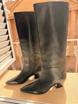 Botas altas de cuero negro de Zara. - Diseño de caña alta. - Suela gruesa y resistente.