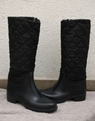 Botas de agua altas con diseño acolchado. - Parte superior textil acolchada. - Base de goma. - Caña alta.